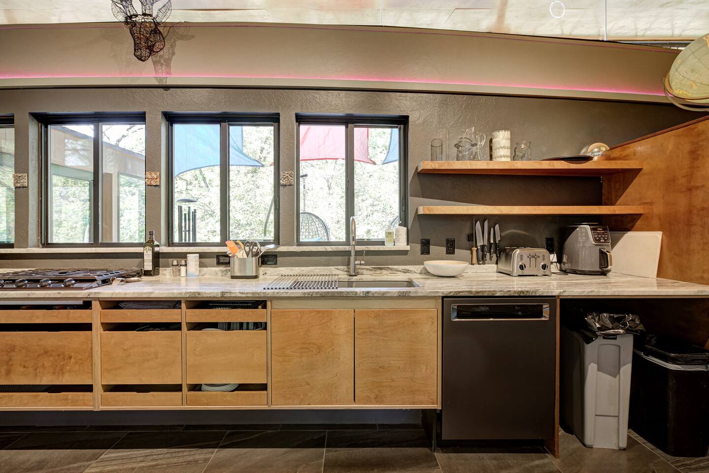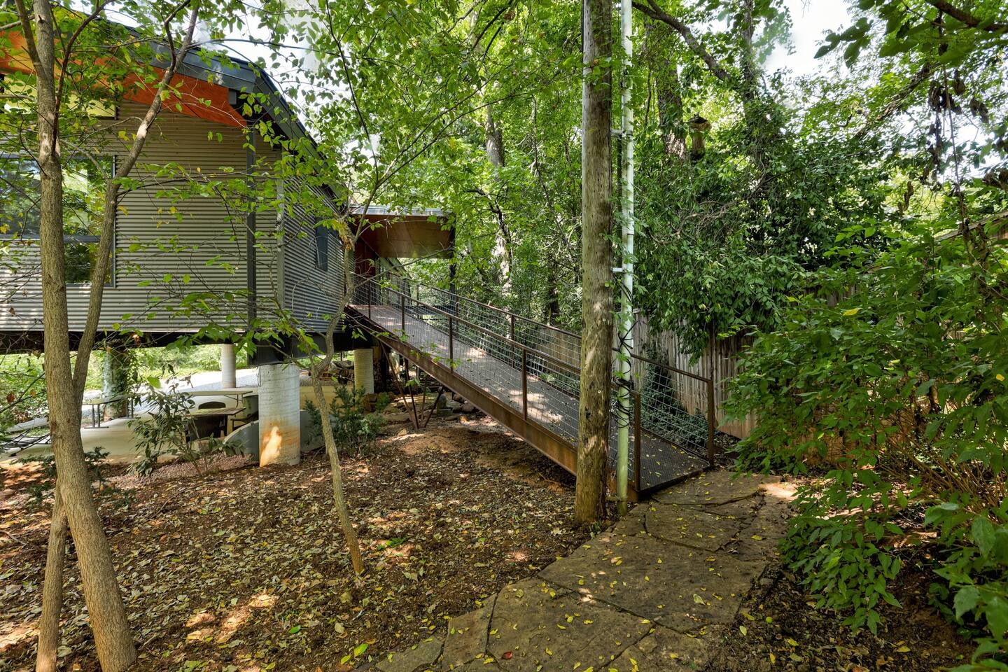 Stay in style at this one-of-a-kind elevated home, just a short walk from the University of Oklahoma, the stadium, and all the excitement of game day. Perched on sturdy stilts, this unique modern retreat offers a completely open-concept layout with no closed-off walls—perfect for guests who appreciate airy, light-filled spaces. Floor-to-ceiling windows flood the home with natural light, while sleek finishes and contemporary design create a stylish yet comfortable atmosphere. Whether you’re here to cheer on the Sooners, visit campus, or explore Norman’s vibrant dining and nightlife, this distinctive space offers the perfect blend of convenience and character.