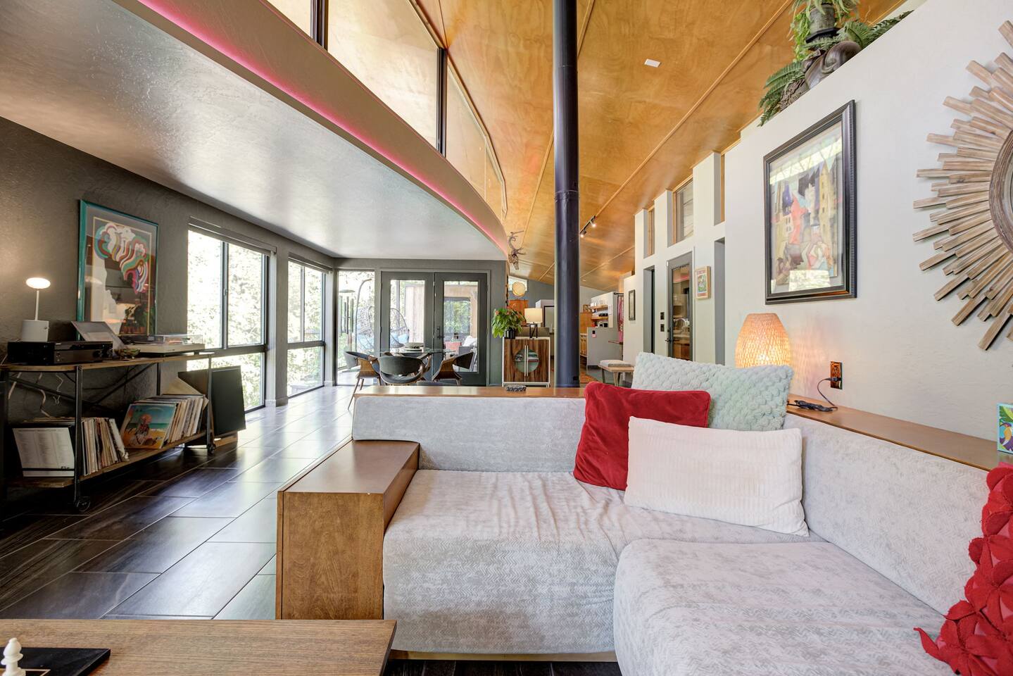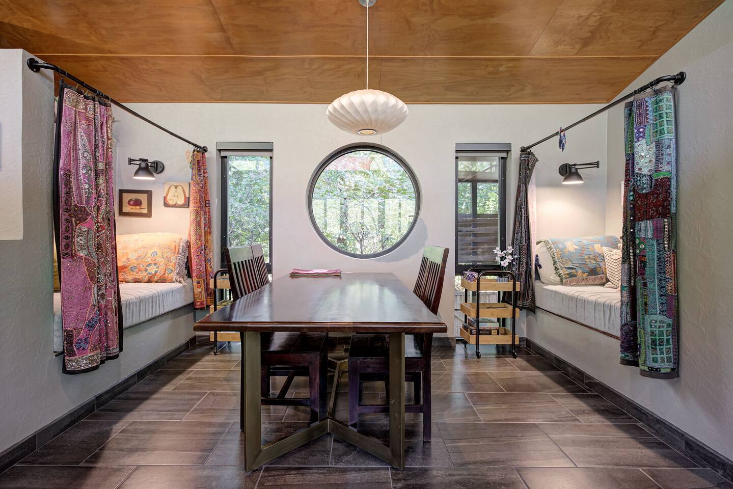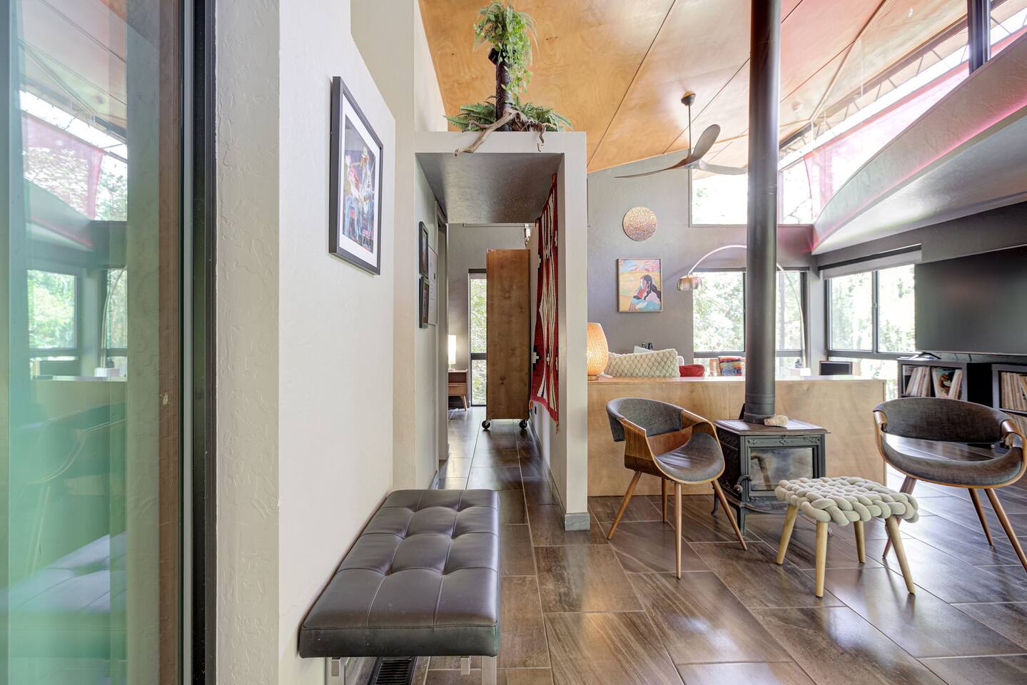 We want to share a little more about this one-of-a-kind home so you know exactly what to expect. This property was thoughtfully designed by a local architect and is rich in character and history. It features a very open-concept layout with a creative, airy design that truly sets it apart. Because of this architectural style, the interior spaces do not have traditional walls that extend to the ceiling. There are two primary sleeping areas located on opposite ends of the home, along with an additional sleeping space in the center of the house that includes two single beds. Please note that the sleeping areas do not have doors that close, as the home is designed to feel open, connected, and full of natural flow. This space is ideal for guests who appreciate unique design, shared spaces, and a home with personality and history. If privacy between sleeping areas is a top priority, this may not be the best fit—but if you’re looking for a truly special stay in a thoughtfully designed home, this place is something special. We’re always happy to answer any questions to make sure this home is the right fit for your stay.